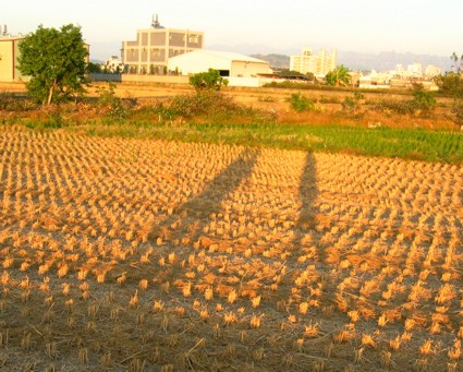 家附近的田最近收割,曬的焦黃的稻梗,鋪在泥地上~~恩~~這味道還真熟悉。