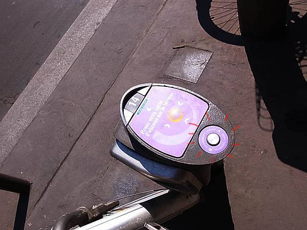 下方是感應磁卡,不需要操作機器,對著選中的腳踏車旁感應器逼逼!!