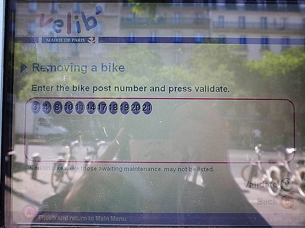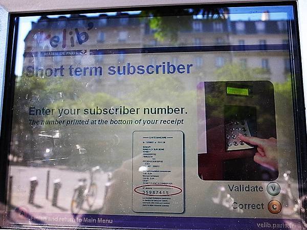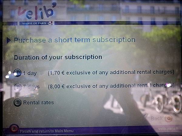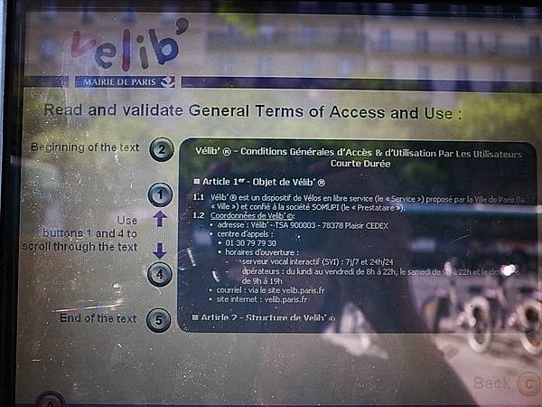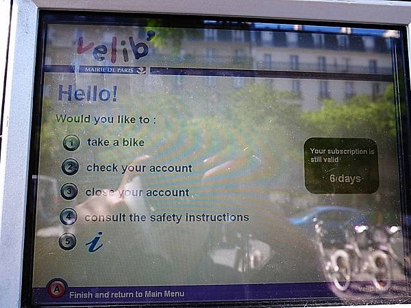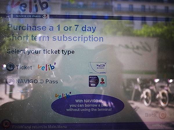 你很懶也可以直接在法語介面按 " 1 " Holder of a Velib' short term ticket 已有Velib'短期票